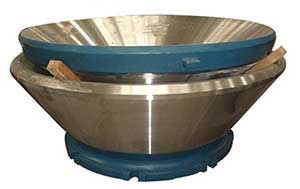 5). During assembly, lift the dynamic cone part at the cap nut, put the main shaft of the dynamic cone into the eccentric shaft gently and slowly, and make the spherical surface of the dynamic cone contact with the bowl shaped bush of the bowl shaped bearing stably, so as to avoid damaging the spherical ring.